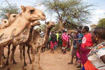 ‘Nummer?’ vraagt dorpshoofd James Lelemusi aan degene die vooraan staat. De regionale overheid heeft de kamelen gekocht van handelaren in de buurt van de grens met Somalië, voor zeshonderd dollar per dier. Tot nu toe zijn vierduizend kamelen, als onderdeel van dit programma, verdeeld over de laaglanden van de provincie. Dit versnelt de  verschuiving die al tientallen jaren gaande is in meerdere delen van Afrika die afhankelijk zijn van vee. Een handvol gemeenschappen, met name in Kenia en Ethiopië, bevindt zich volgens academische studies in verschillende stadia van de transitie. De wereldwijde kamelenpopulatie is de afgelopen twintig jaar verdubbeld. Volgens het VN-agentschap voor landbouw en investeringen is dat deels te danken aan het feit dat de kameel zich gemakkelijk kan aanpassen aan klimaatverandering. In tijden van ontbering produceren kamelen meer melk dan koeien. Vaak hoor je dit gezegde: in een droogteperiode sterft de koe het eerst en de kameel het laatst. ‘Als er geen klimaatverandering was, zouden we niet de moeite nemen om deze kamelen te kopen,’ zegt Jonathan Lati Lelelit, de gouverneur van Samburu, een provincie op ongeveer vierhonderd kilometer ten noorden van Nairobi.