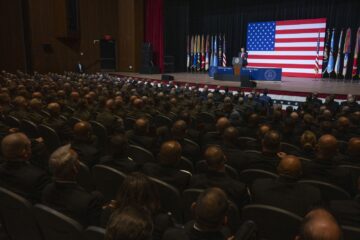 ‘We worden van binnenuit belaagd,’ verklaarde Donald Trump. ‘Het is niet anders dan een buitenlandse vijand, maar in veel opzichten is het moeilijker omdat ze geen uniform dragen,’ vervolgde hij. Deze toespraak, gehouden voor ‘een publiek dat apolitiek zou moeten zijn’, vormt ‘een opmerkelijke aantasting van de grens tussen het leger en de politiek en is een verontrustend voorbeeld voor degenen die bang zijn voor Trumps pogingen om het leger te politiseren en wat dat zou kunnen betekenen’, aldus CNN. De zender benadrukt dat de hoge officieren, trouw aan het protocol, tijdens de hele toespraak van de Amerikaanse president stil waren.