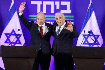 De voormalige premiers Naftali Bennett (rechts) en de centrumpoliticus Yair Lapid kondigden zondag de oprichting aan van een nieuwe politieke partij genaamd Beyahad (‘Samen’). Een bron binnen Lapids Yesh Atid-partij vertelde de linksgeoriënteerde Israëlische krant Haaretz dat ‘de enige manier om te winnen’ van Netanyahu was om ‘een groot blok te vormen’. ‘We kunnen niet zo verdeeld zijn’, benadrukte Lapid.